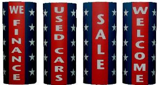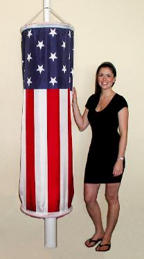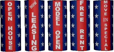 | Commercial Decorative Pole Socks These unique new 360° view high visibility Pole Covers / Windsocks are perfect attention getters indoors or outdoors. The covers are an efficient use of space and a great method of drawing attention to your business. Constructed of heavy color fast 210D Nylon flag material which insures long lasting use. 58” X 5’ will fit virtually anything up to 18” diameter Installation could not be easier. These covers slip easily around poles and columns so installation takes only minutes assuring you fast setup and easy removal. There are no tools needed. |